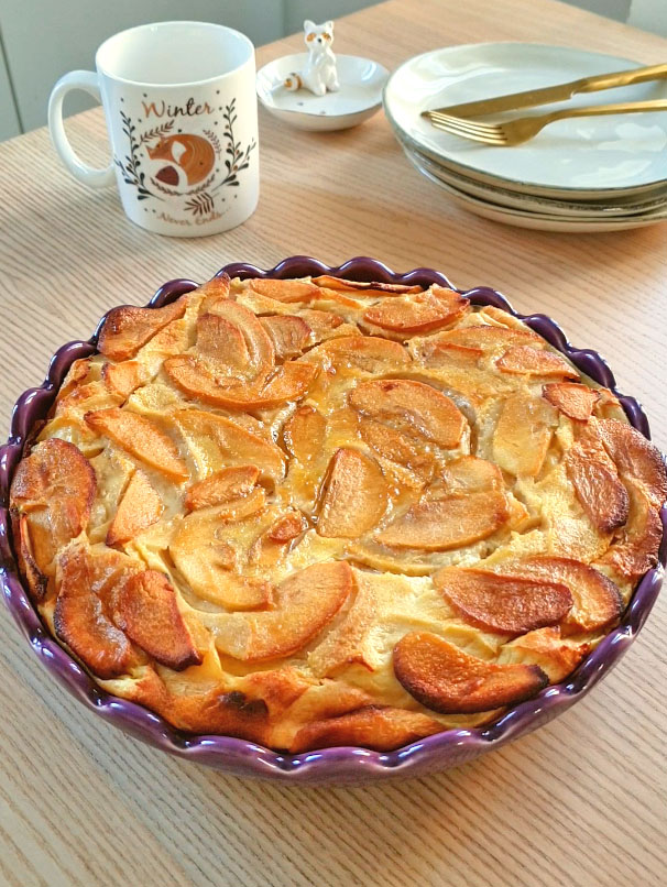 - Versez la pâte dans un moule puis ajoutez les pommes.
